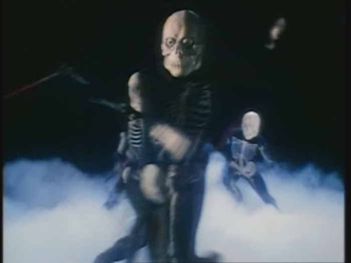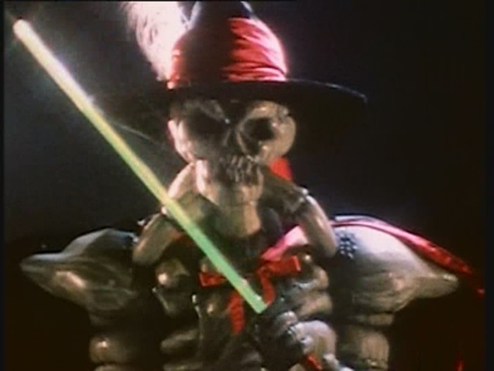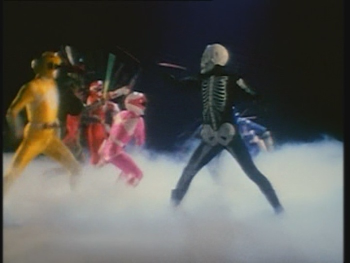 Da er es nicht alleine gegen die Rangers aufnehmen möchte, ruft er Verstärkung herbei. Wie aus dem Nichts taucht eine Horde Skeletttypen auf, die sofort auf die Power Rangers losgehen.