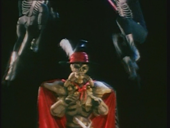 Der Knochenmann hat sich zu ihnen gesellt. Er hat sogar ein Schwert dabei. Oder einen Leuchtstab. Nennt das Ding, wie ihr wollt.
