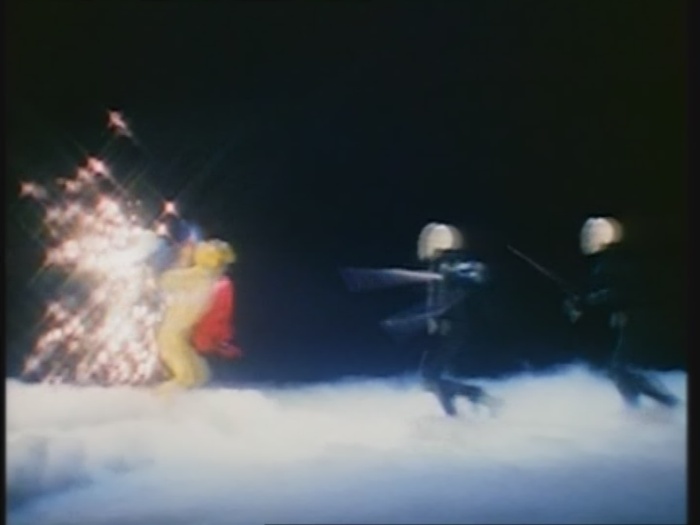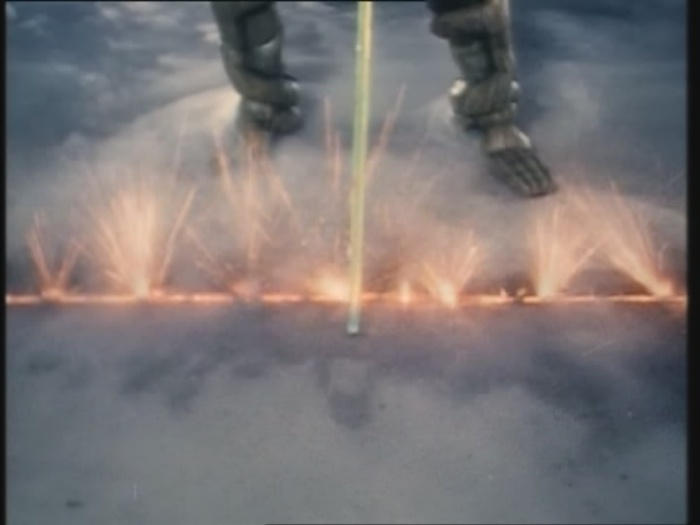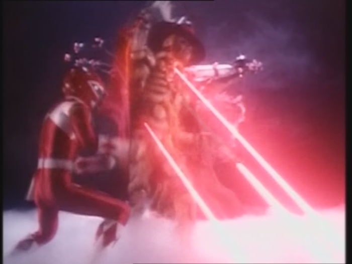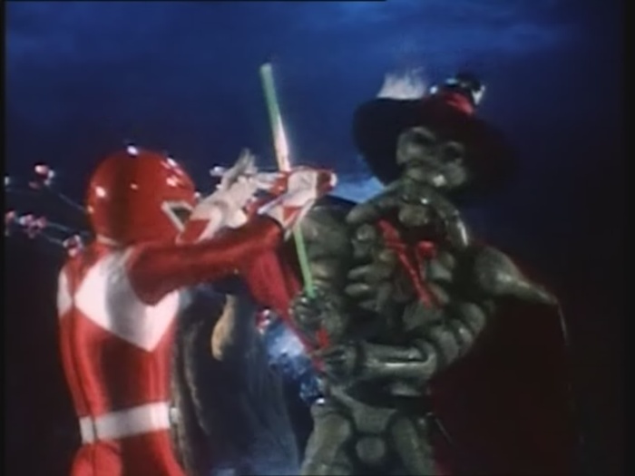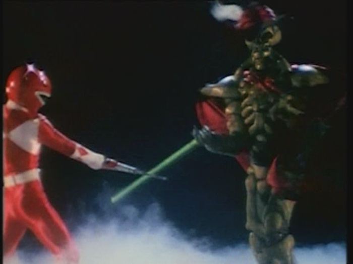 Die Ranger haben langsam genug vom Knochenmann. Der rote Ranger geht wieder mit seinem Schwert auf seinen Feind los.