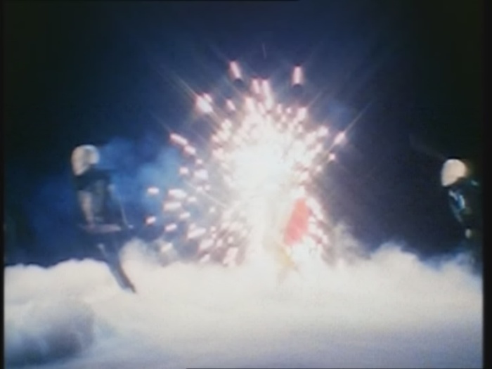 Der Rote Ranger nimmt es mit dem Knochenmann auf, während seine Kollegen die Skelette beschäftigen. Leider hat er keinen großen Erfolg. Der Knochenmann trifft ihn mit seinem Schwert, was eine Explosion auslöst.