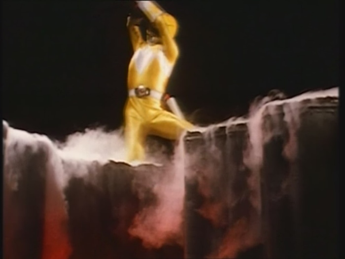 Er wirft ihn Trini zu, die sich wiederum durch Skeletthorden schlägt, um den vom Knochenmann selbst erschaffenen Krater zu erreichen. Die Skelette haben keine Chance und werden in ihre Einzelteile zerlegt.