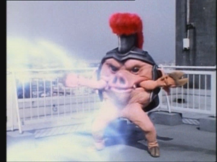 Das verfressene Schwein ist den Rangers von Anfang an überlegen. Erst einmal gibt es jedem eine Abreibung.