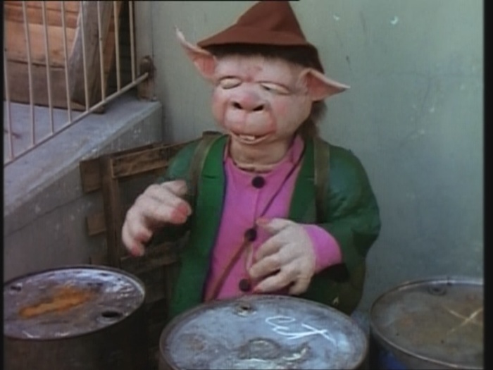 Mr. Ticklesneezer will mit der ganzen Sache nichts zu tun haben. Er will ja nur Zeug sammeln. Darum schleicht er davon.