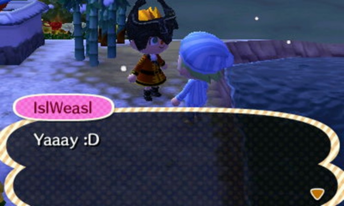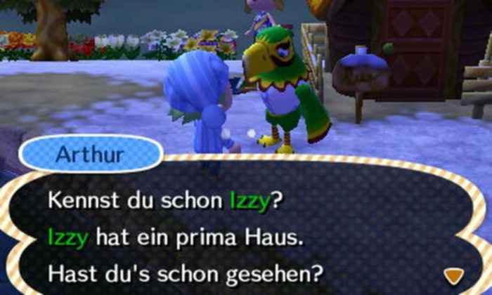 Nachdem ich mich davon überzeugt hatte, niemanden vergessen zu haben, beschloss ich endlich, mir die Häuser der Menschen anzusehen. Ich begann mit Izzy. Izzy stellte sich mir mit einem „Danke!“ vor.