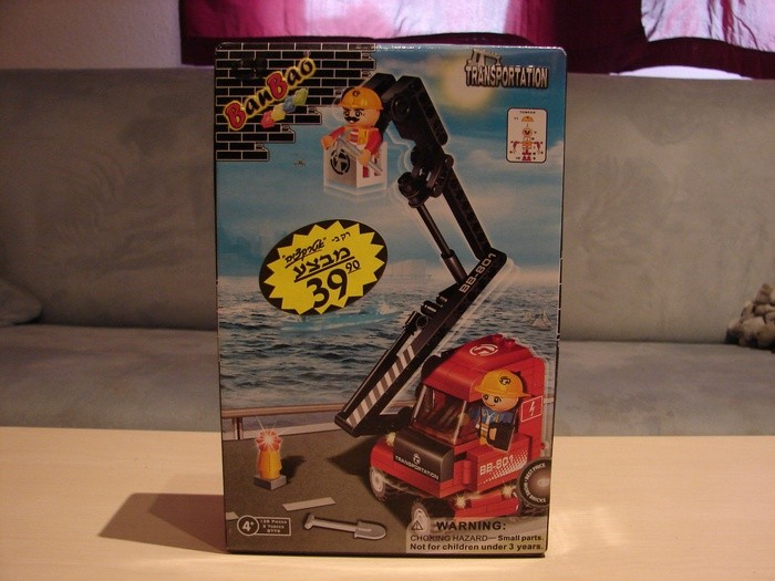 Umgerechnet etwa 8,50 Euro, wenn ich das richtig in Erinnerung habe. Natürlich habe ich nicht mit richtigem Geld bezahlt, sondern in Büchern. Aber das tut hier ja gar nichts zur Sache. Zeit, für eine ausführliche Besprechung. Ich muss aber erst einmal versuchen, mich zu beruhigen. Das erste Foto dieses Beitrags macht mich ganz nervös. Meine Frau hat mir ausdrücklich verboten, wegen LEGO-Imitaten nach Israel zu fliegen und jetzt warte ich auf die Scheidungspapiere.